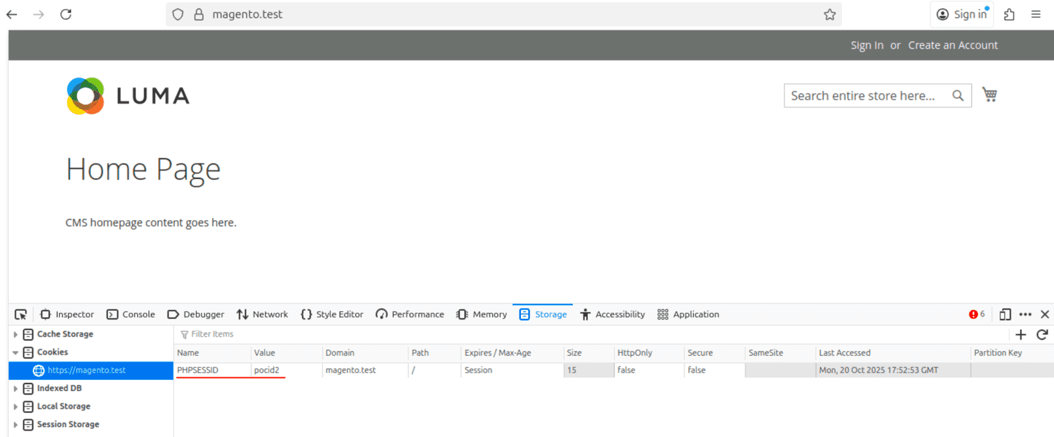 Set-Cookie: PHPSESSID=54d45744ffbf0fc560a2fc511ca96680; expires=Mon, 20 Oct 2025 21:10:34 GMT; Max-Age=3600; path=/; domain=magentodemo.pentest-ground.com; secure; HttpOnly; SameSite=Lax